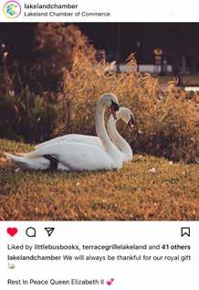 Two Lakeland natives were in the Unit ed Kingdom in mid-September and wit nessed firsthand the grief over the death of Queen Elizabeth II. Jane Stephenson Bumar and Courtney Campbell-Reich both graduated from Lakeland High School in 1985. Stephenson Bumar splits her time between Scotland and Central Florida, while Campbell-Reich lives in California and works for United Airlines. Stephenson Bumar saw the queen’s funeral procession in Edinburgh and caught a glimpse of King Charles III. Campbell-Reich left flowers and a note from Lakeland residents near Buckingham Palace thanking the queen for the pair of mute swans she donated to the city in 1957. In addition, Lakeland City Manager Shawn Sherrouse had the city’s creative services manager put together a wreath for the queen “to pay homage to the lasting impact her gen erosity has had on our community.” The lavender, gold, and cream wreath was on display in city hall’s lobby.