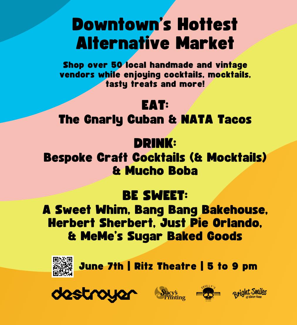 June 7, 5 – 9 pm at the Ritz Theatre during First Friday. Shop from over 50 local handmade and vintage vendors while enjoying delicious snacks, sweet treats, and their infamous cocktails and mocktails! Escape the heat and chill out at an indoor alternative market! More info on FB @thebanditmarket.