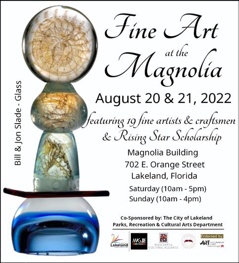 This is an annual 2-day Invitational Fine Art Show held on Aug. 20 & 21 from 10am-5pm at the Historic Magnolia Building, next to Hollis Gardens in Lakeland. The show features 19 accomplished artists & craftsmen from Florida. Founded and curated by local Lakeland artist, Betsy Bohrer, this event emphasizes the promotion of education, awareness & advancement of the working artists of Florida during the summer. FB @FineArtMagnolia