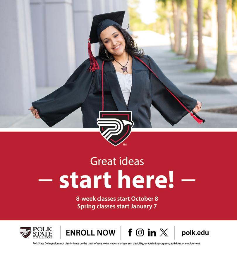 Prospective students and families are invited to tour Polk State campuses, meet faculty and staff, learn about academic programs and student life, complete college applications, receive assistance with applying for financial aid, enter to win scholarships, and more. During the event, attendees can also receive information on specific programs, including Business, Education, Engineering Technology, and Health Sciences. The JD Alexander Center in Lake Wales at 152 E. Central Ave. will host the first open house event of the semester on Oct. 28. Open house is scheduled from 5 p.m. to 7 p.m. in JDA 101. Open house on the Winter Haven Campus will take place on Oct. 30 from 5 p.m. to 7 p.m. at 999 Ave. H N.E. in the Health Center (WHC) Gymnasium. Finally, the open house on the Lakeland Campus at 3425 Winter Lake Road will be held on Nov. 6 from 5 p.m. to 7 p.m. in the Lakeland Technology Building (LTB) 1100 Atrium.