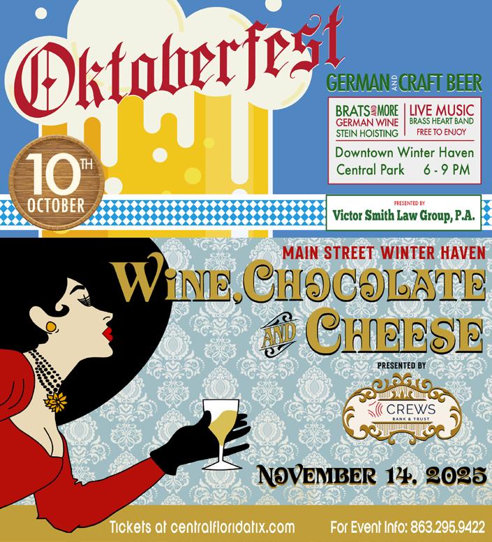 Oct. 10, 6 – 9 p.m. at Central Park in Downtown Winter Haven. Over 30 German, American, and Craft beers will be available. Buy a tasting ticket and sample as many of the beers as you’d like! German food is available for purchase. Presented by Main Street Winter Haven. centralfloridatix.com