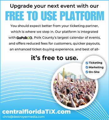Oct. 14, 6 p.m. at the Bartow Civic Center. The Polk Arts & Culture Hall of Fame Gala and Awards Ceremony features live music, an art exhibit, catered dinner, and an awards ceremony highlighted by the induction of the Class of 2025 into the Polk Arts & Culture Hall of Fame. centralfloridatix.com