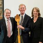 Beginning in 1873, each graduating class of Fords would vote for the student they most admired and award the winner a large, carved ebony spoon and corresponding title of “Spoon Man.” Though the tradition was retired some time ago, the practice returned this spring to honor outgoing board chair Charley Beever ’74, shown here, CENTER, with Alex Robinson ’96 and Haverford President Wendy Raymond. Beever was surprised with a "Spoon Man" award custom made by Wisconsin-based master artisan Derek Brabender.