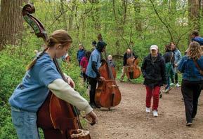 An outdoor orchestral performance. Earlier this spring, Haverford’s Nature Trail was resonant with the tones of double bass as the Network for New Music presented “A Murmur in the Trees,” a live outdoor performance to honor late bassist Robert Black. Twenty-four bassists, elementary age through adult, performed the 30-minute composition, while attendees took in a unique listening experience based on their chosen path through the woods.