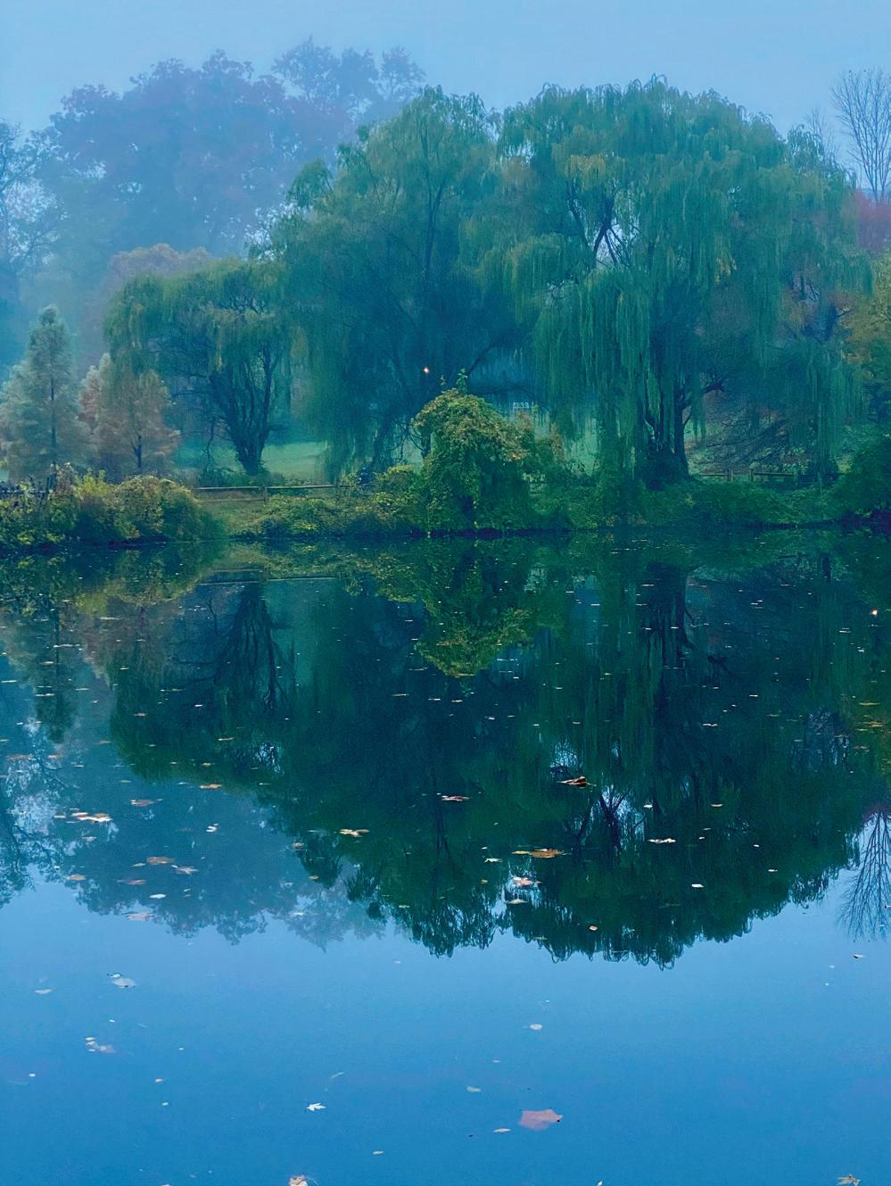 Singer, a social worker who lives nearby and has been walking the campus for years with her dogs, says she took this photo of the Duck Pond “early on an October morning when the campus was shrouded in a blanket of fog that made everything look mystical. What I love about the pond photo is the serene beauty of the setting, the deep jewel-tone colors, and the gauzy background that is reflected in the water.” Singer says she began taking daily photos of nature after the start of the pandemic, as a calming activity, and started sharing them on Facebook and Instagram with a group of friends. “When they told me the photos made them feel better, too, I began sharing them with a wider audience on a Lower Merion community site and the Friends of the Haverford College Nature Trail Facebook page.” Post-pandemic, Singer continues to post her photos on her own social media, and on the public platforms.