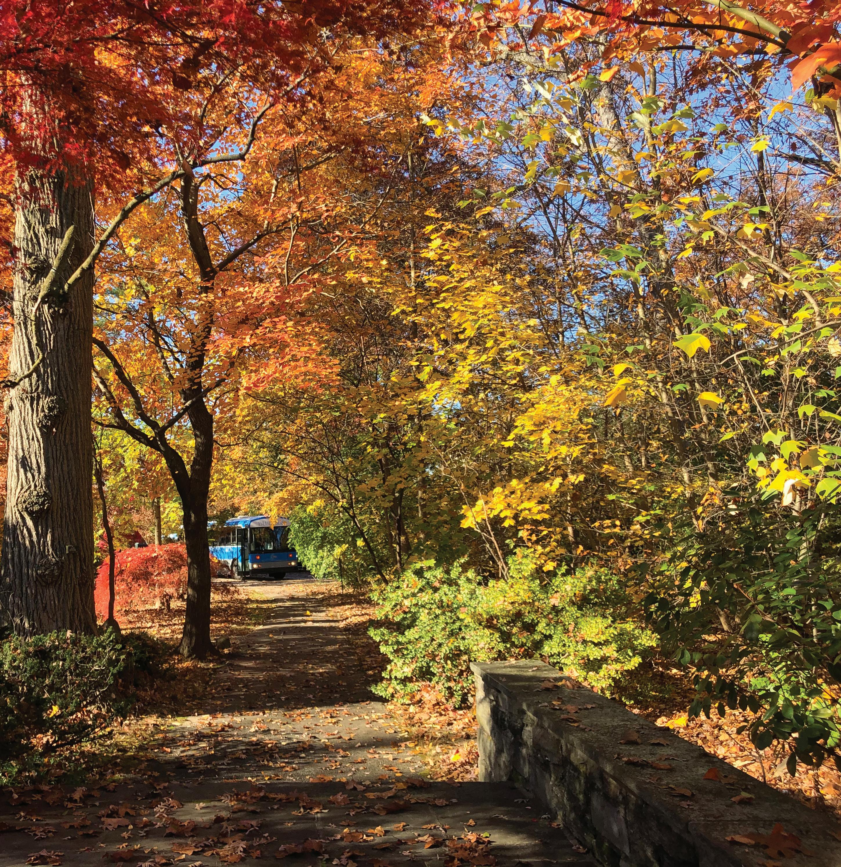 Miller, a psychology major and data science and neuroscience double minor, took this shot in early November. “I took the picture standing outside the back exit of the Dining Center, looking down the path through the garden and trees there,” says Miller. “I really like the view down that pathway, so I had been taking pictures there each day I passed through. On that day, I really liked the way that the gradient of autumn colors framed the vibrant Blue Bus in the background. And, as pretty trees and the Blue Bus are such recognizable parts of Haverford and the Bi-Co, I think the picture nicely captures the vibe of Haverford.”