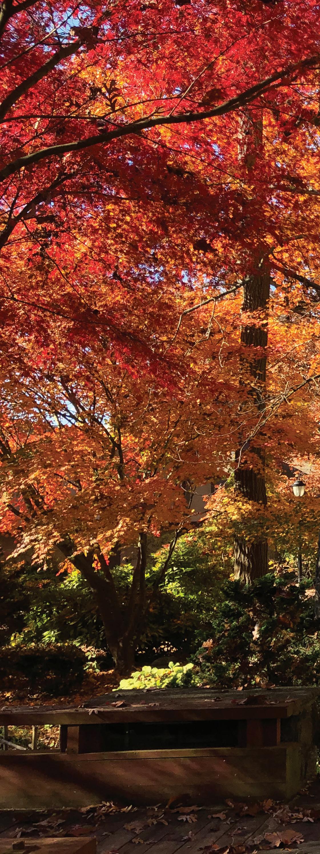 Last year’s first place winner was Sakina Gulamhusein ’25, who entered a photo of the bridge that lies between the Denis Asian Garden and the Gertrude C. Teaf Garden next to the Dining Center. “It was such a great shot that we ended up using it for the cover of our annual report,” says Kelly. —Eils Lotozo