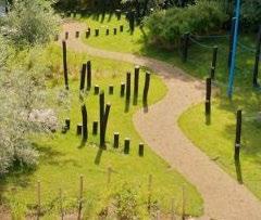 Zone Key 1 Retained terrain with existing trees. 2 Community space. 3 Garden area to celebrate tree. 4 Arrival area with casual seating. 5 Feature trees. 6 Allotment 7 Visitor parking 8 Bleacher seating/steps. 9 Relaxing Pockets. 10 Multi-use: Play + Social area. 11 Open green play space 12 Carpark 13 Micro Court