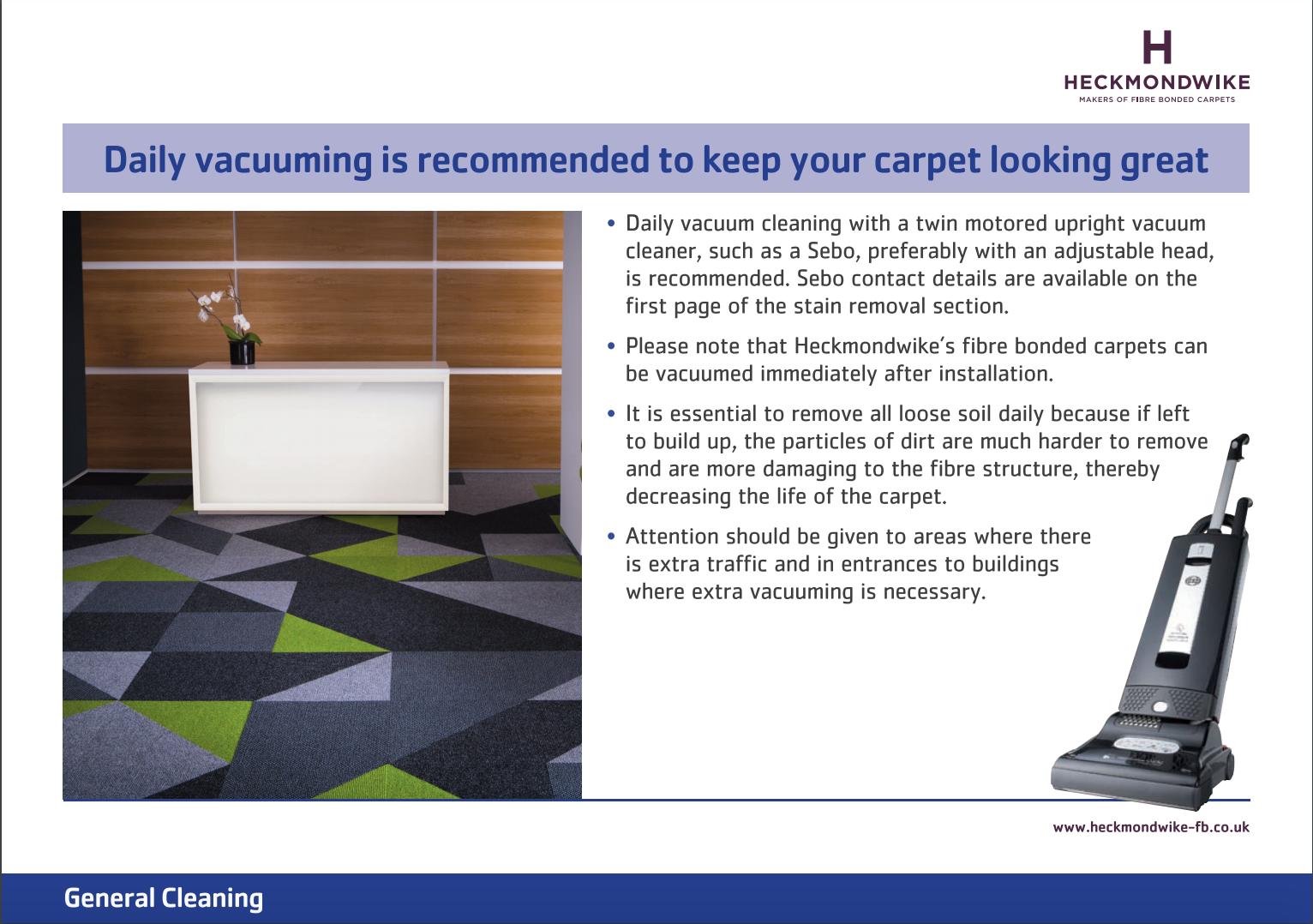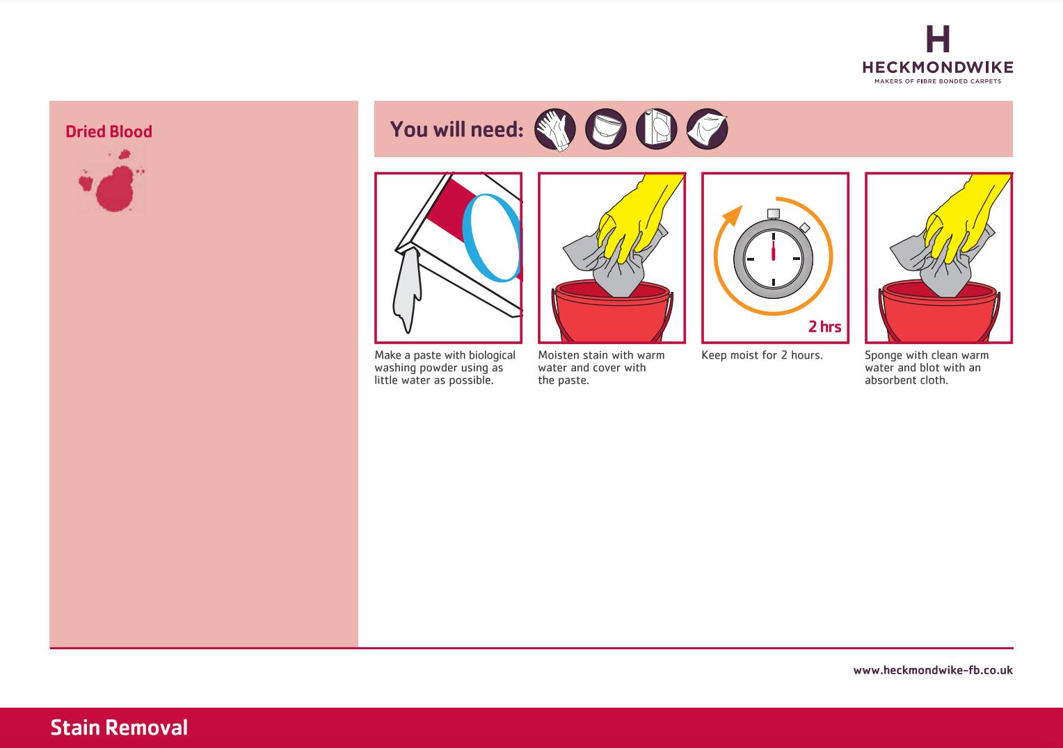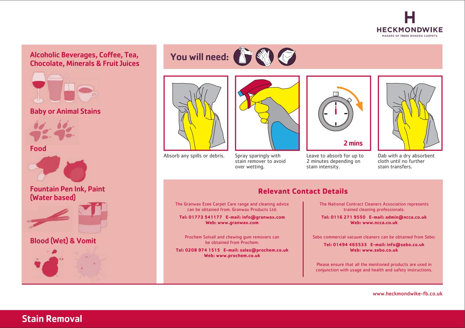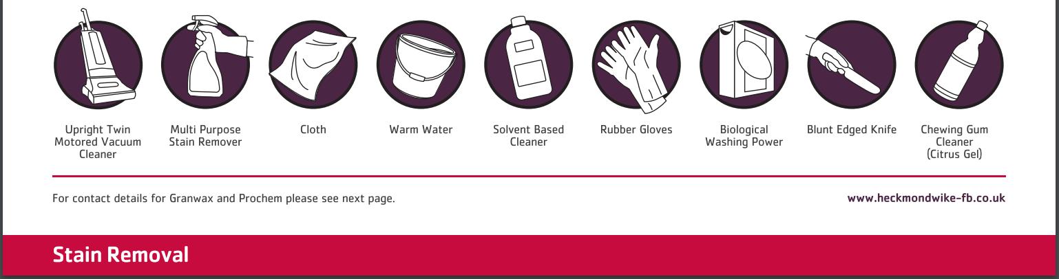 In all cases after stain removal, the carpet should be allowed to dry completed and then cleaned with a twin motored upright vacuum cleaner.