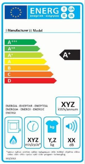 The EU energy labelling system rates products from A+++ (the most effcient/least energy using) down to G (the least effcient / most energy using).