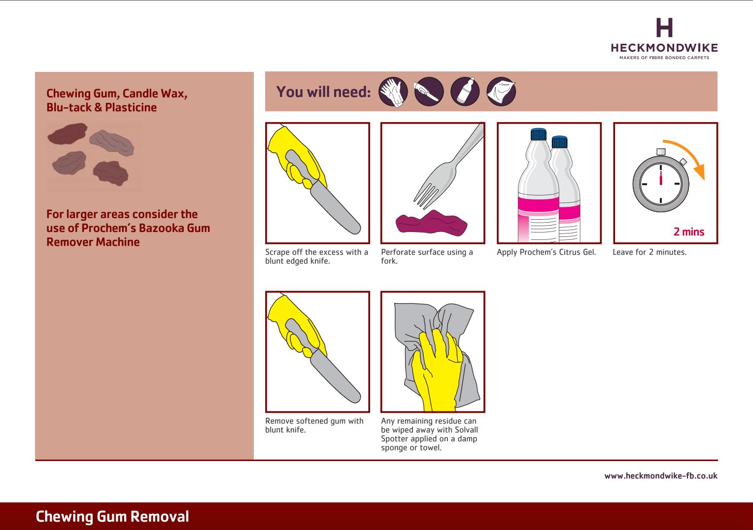 Wherever possible our recommendations should be strictly followed. Immediately blot with a clean absorbent cloth. If any further stain remains or has otherwise been allowed to dry, the method will vary accordingly. If stains are not dealt with immediately, the type of stain may not be able to be identified. Stains left over a period of time become increasingly difficult to remove and may require several treatments. Most stains can be successfully dealt with by the use of either a good quality multi-purpose stain remover, such as Granwax Ezee Spot and Stain Remover or a solvent-based cleaner, such as Prochem Solvall (solvent cleaning of bitumen backed tiles should preferably be avoided, where this is not possible, extra caution should be taken and only very light surface cleaning should take place).