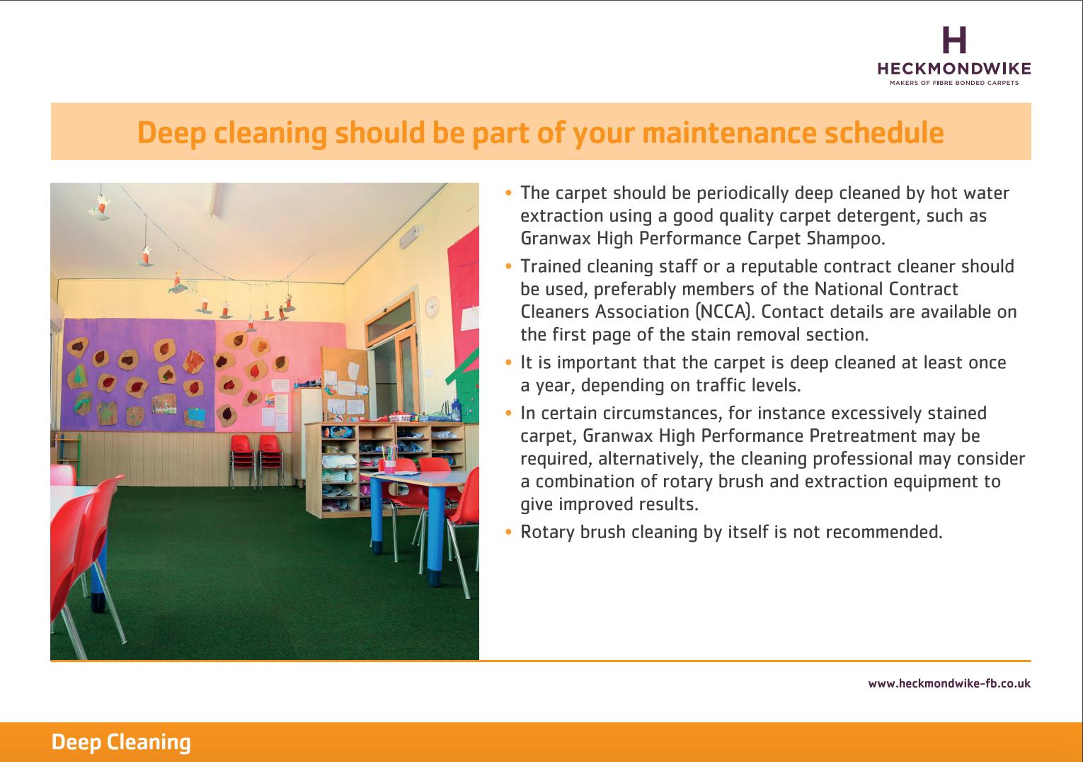 Regularly damp mop with a suitable micro fbre mopping system and diluted foor cleaner, following the manufacturer’s dilution recommendations.
