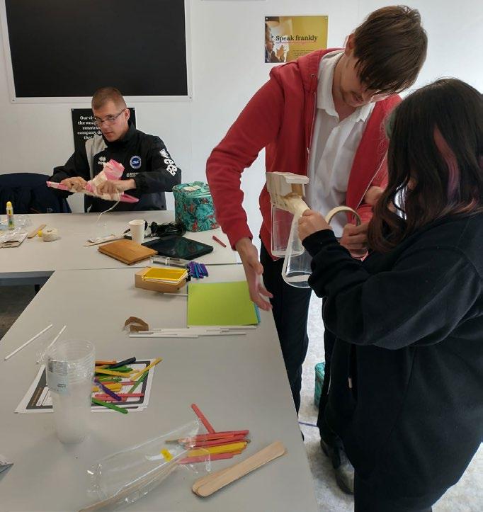 Taking part in a work experience event with ISG and Woodlands Meed College. A new build college that we are currently working on, for students with a wide range of physical and learning disabilities. We used the new college construction site as a learning environment and placement to help prepare and support students for their life journey post college. Our session was titled “What is an Architect” and included discussing what an architect does day to day, elements of a construction project, talking about the new college building, exploring materials, sketching and some model bridge building.