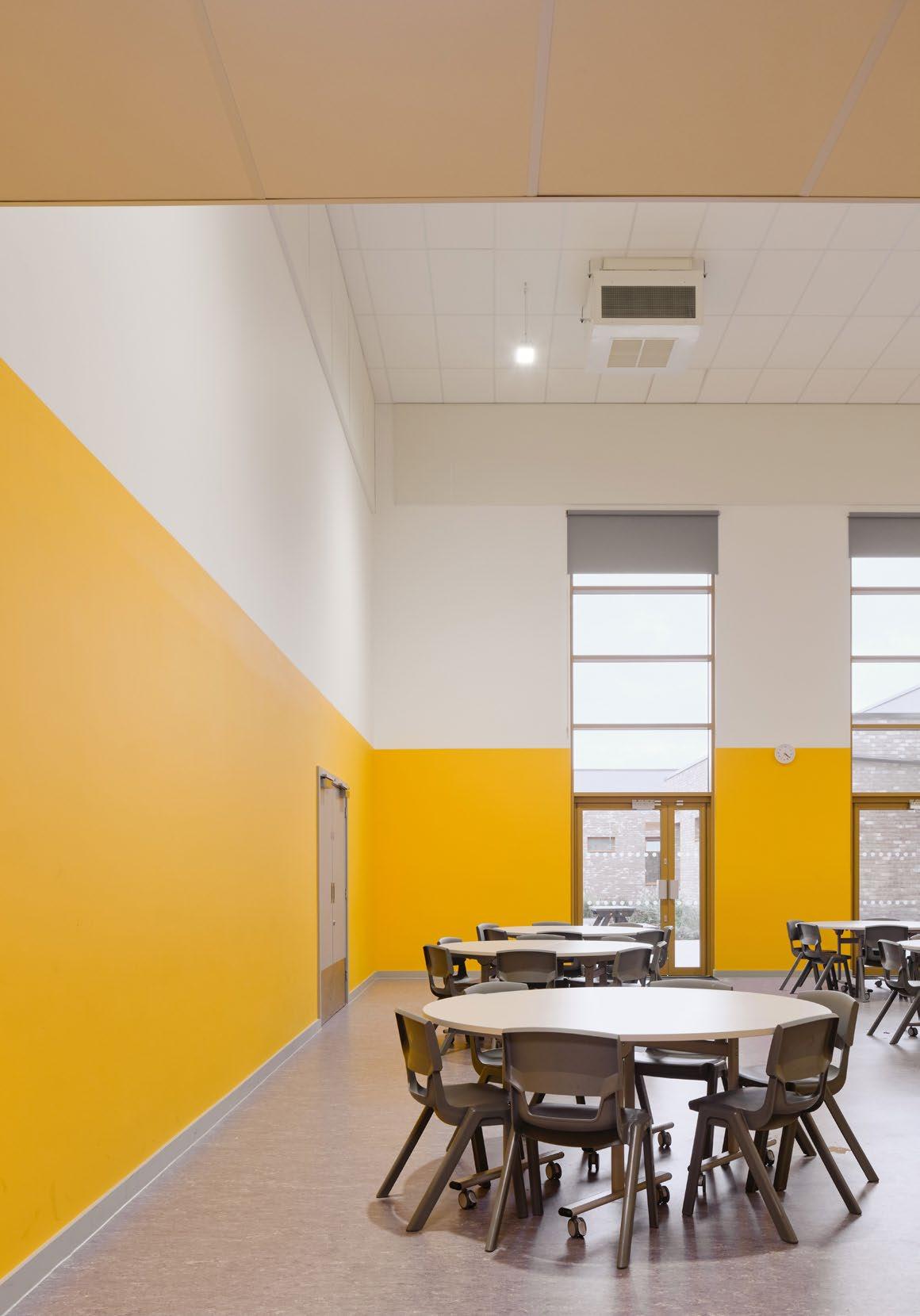 The varied age range of the students, which can change year on year, prompted the classrooms to be split into different groupings. This also facilitates a sense of progression through the school, as classrooms for each key stage will have a different aspect and feel. Equal access to the specialist teaching spaces and sports facilities from the classrooms further improves this flexibility.