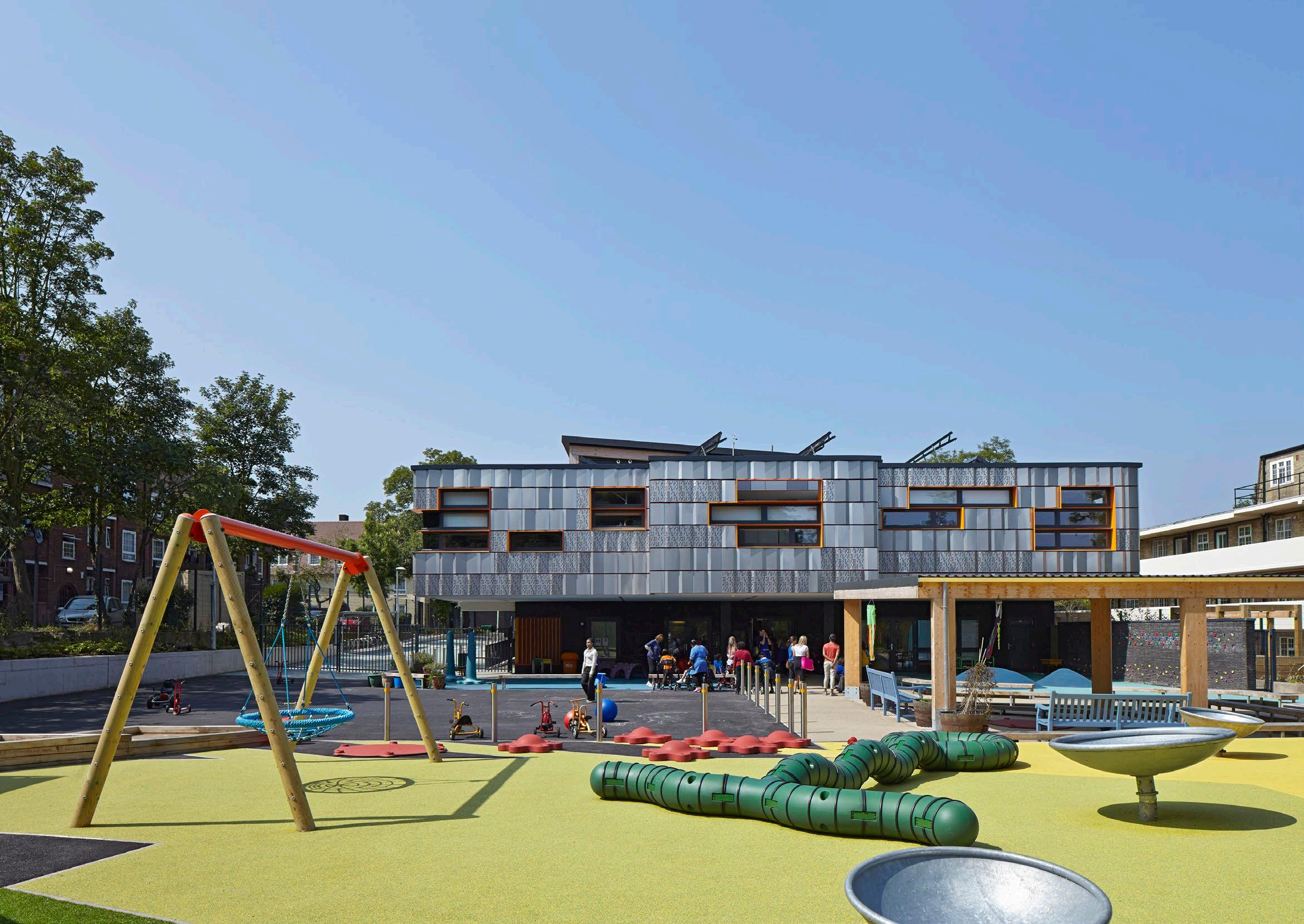 New build school for 90 students aged 3 - 11 with profound and multiple learning difficulties (PMLD) and autism. The school operates over three floors as a result of the site constraints and in order to maximise external play space. The floors are linked with staircases, lifts and a unique ramped elevated walkway which offers 360 degree views of key areas, enabling the children to be fully integrated into all aspects of school life.