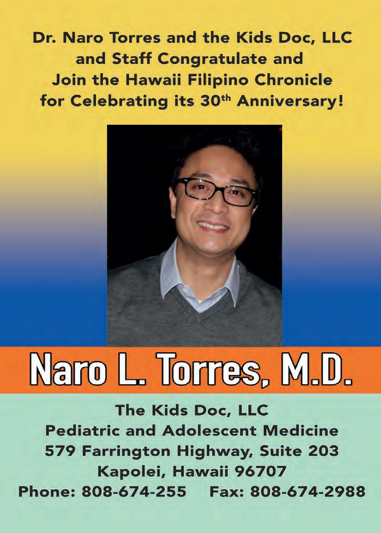 Donations are welcome via the Filipino Media Foundation and are 100% tax deductible. To donate, please contact the Chronicle office at filipinochronicle@gmail.com or call (808) 284-4185 or you can send your donation to Filipino Media Founda tion, 46-471 Holonui Place, Kaneohe, HI 96744-4226.