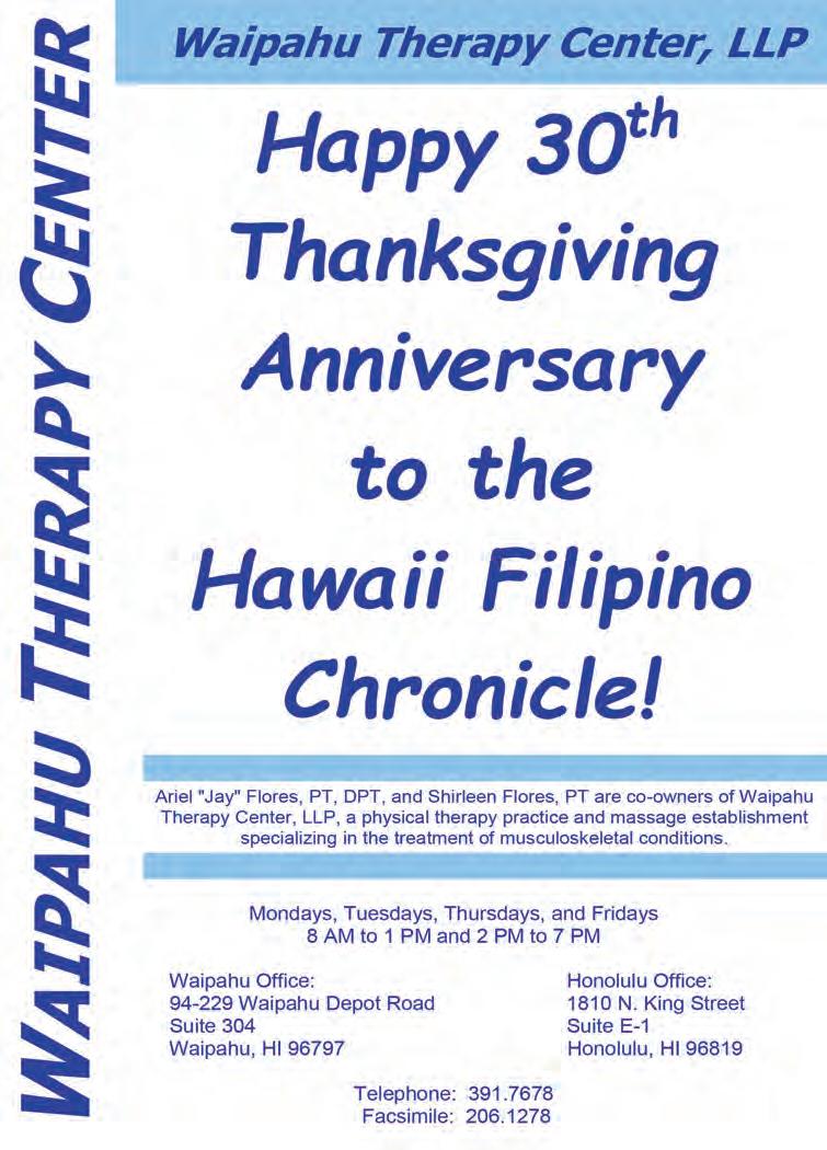 t’s a historical moment for Hawaii’s Filipino community as the Ha waii Filipino Chronicle celebrates its 30th year. From the moment HFC stepped into the forefront in our community, rise to take on issue after issue, and through generations, the HFC has always been a strong, smart and compassionate voice of advocacy.