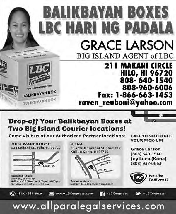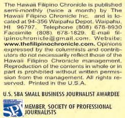 We hope you enjoy this issue. For back issues, visit www. thefilipinochronicle.com. Thank you for supporting the Hawaii Filipino Chronicle. Until the next issue,warmest Aloha and Mabuhay!