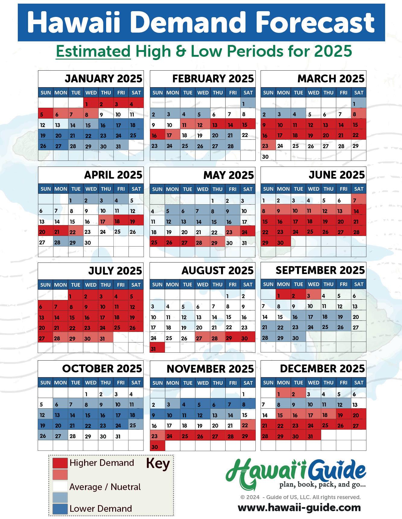 As is to be expected, when more people are 'on-island' visiting the Hawaiian Islandsaccommodation, rental, and flight costs will increase as well.