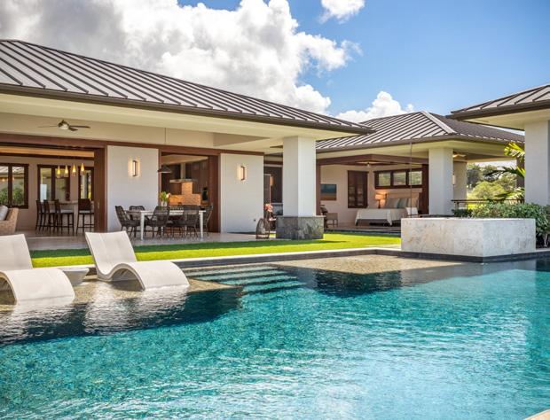 Currently, Hawai’i Life has several sales pending in the ultra-luxury segment, including 4421 Malalo. Our highest-priced listing on Kaua‘i, this thoughtfully designed, newly built Hanalei Bay residence is move-in-ready and sits on a double, corner lot spanning a half-acre. Listed for $24 million, the meticulously crafted, classic bungalow boasts a solar automation system and copper roof, and its lava rock wall surrounds serene landscaping and a custom pool for an air of tranquility.