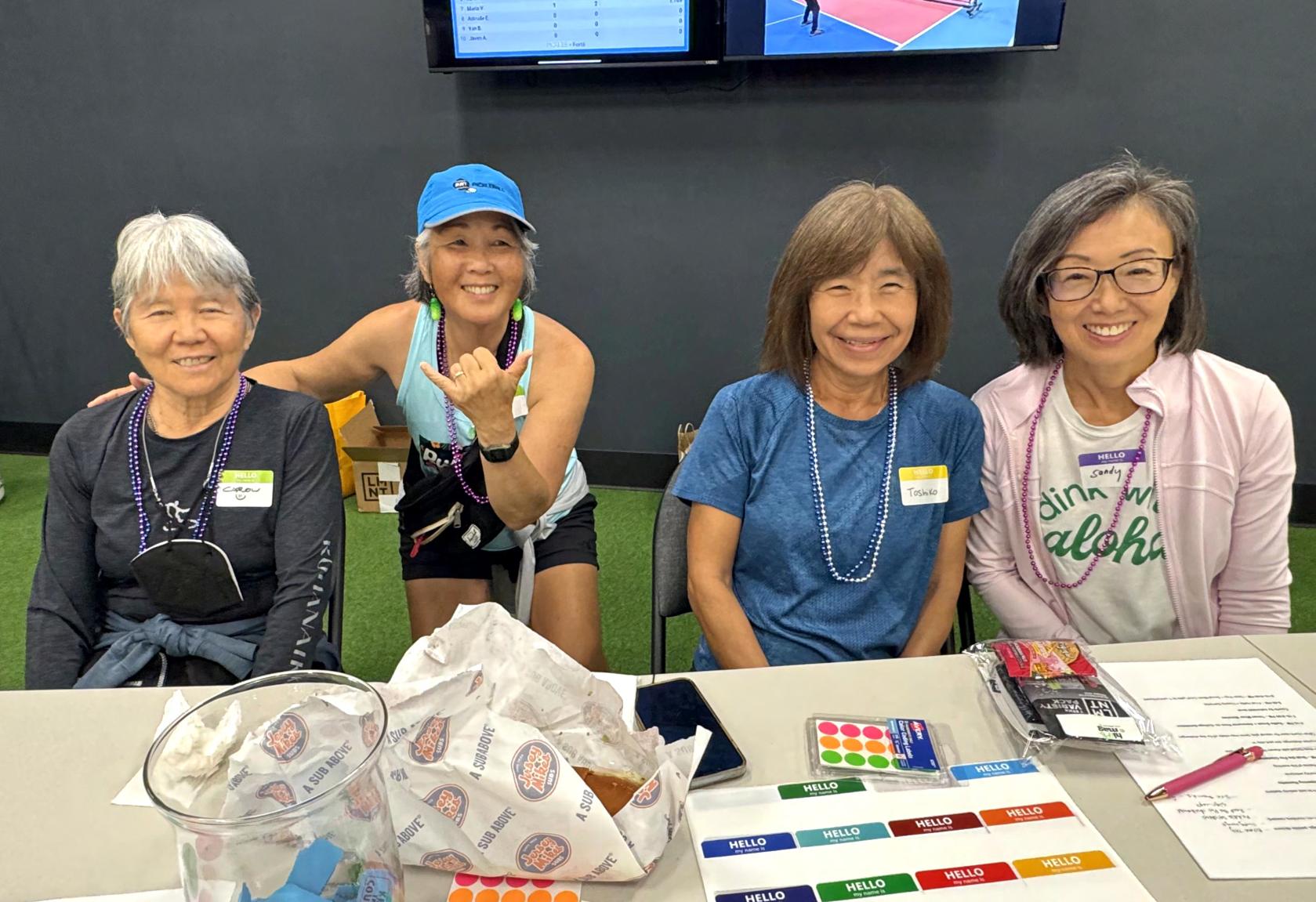 PICKLEBALL FRIENDS FROM OUR COMMUNITY: Bruce Fujimoto and Sandy Kobayashi, Susan Kurisu, Carol Furuya, Stacy Hiramoto, Daphne Manago, Kipp Sakata, Nanna Brown/ The Kitchen Line, and a PB friend who wishes to remain anonymous