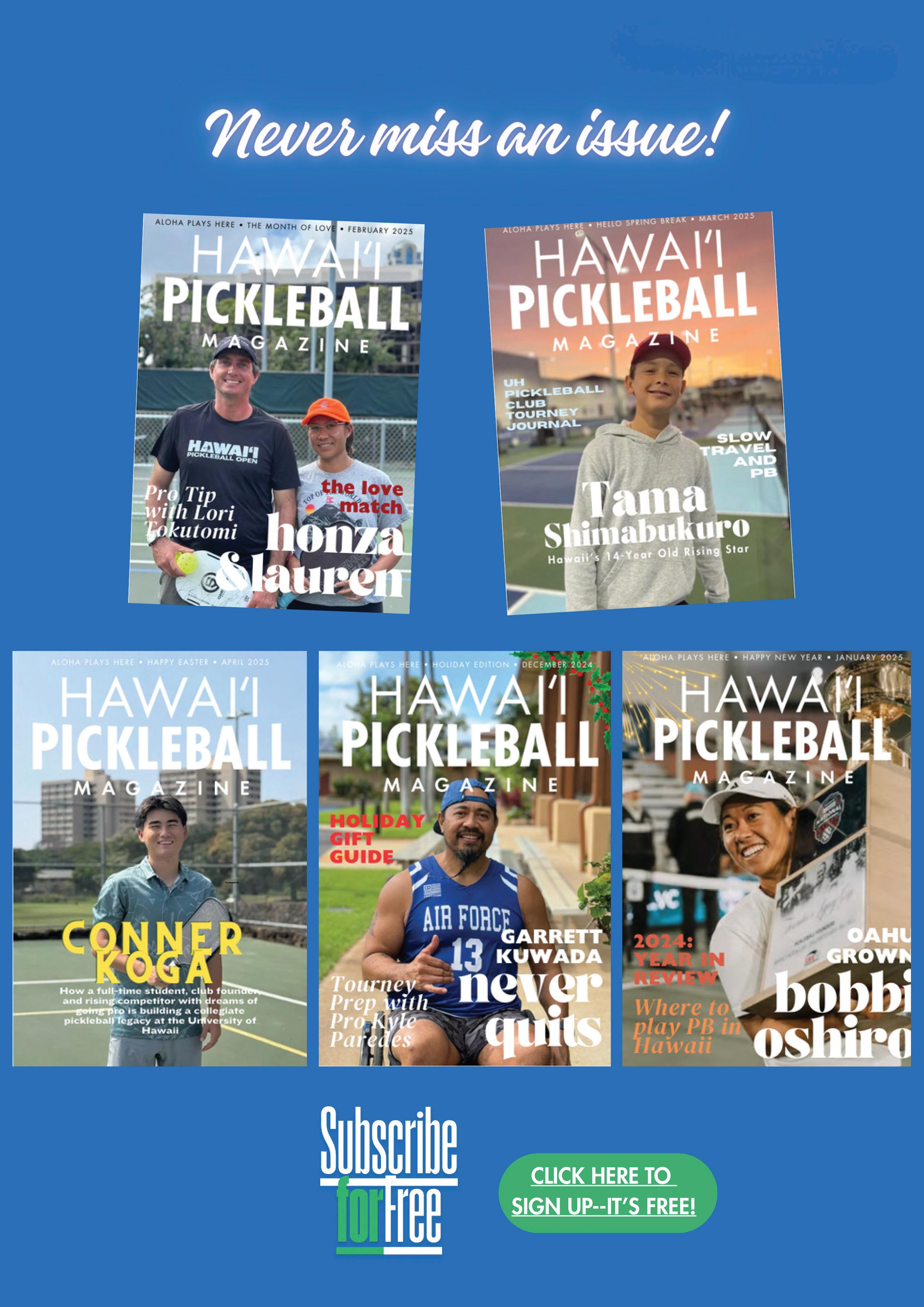 © 2025 Hawaii Pickleball Magazine. All rights reserved. We love sharing our community’s stories — please don’t reuse without permission.