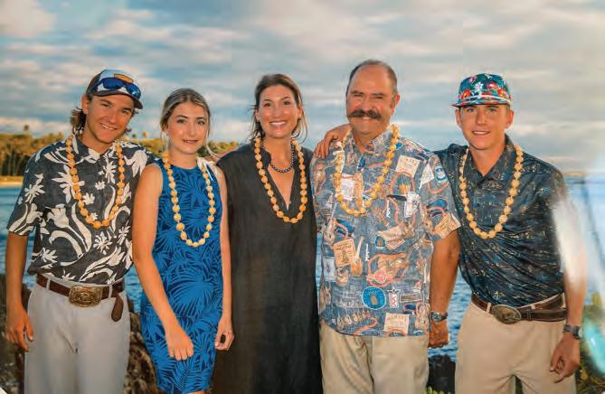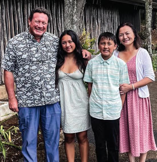 sends “love and warm wishes to you all. Waimea continues to grow and change as new generations make their mark, yet the beauty of the mountain, ocean, and island remains as breathtaking as ever. You will still recognize it!! I am still actively working in real estate, dancing, and riding my bike. Our blended family of seven kids (plus partners and now grandchildren!) keeps life joyful, exciting, and full. My heart goes out to the families of those from our class we’ve recently lost — our connections only deepen in meaning as time goes on. Please know I’m here if you ever need anything — maybe rubber slippers from KTA or something random you haven't been able to find on amazon, sourced here:). If you aren't living here now, I hope you’ll return to Waimea someday soon — dive into the ocean, hike the pu‘us, and enjoy a great plate lunch. Wishing you all the best and a joy-filled 2025!”