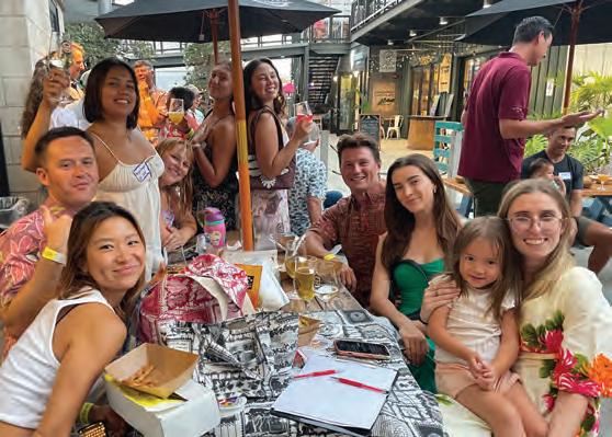 Micah Pueschel ’00 and classmates convened on O‘ahu for the wedding of Adam Taylor ‘99 and his wife Katrina Bowden. “Met up with Corrie Machesky ‘99, Kraig Hynes ‘99, Malia Bolton ‘00, Racey Biven ‘00, Cayson Peterson ‘05, Jamie Rosenfeld ‘04, Leighton Hind ‘04, and Zak Toyofuku ‘99