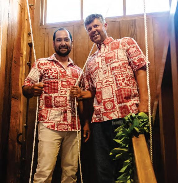 Director of Facilities TJ Kalaniopio ’94; P’21, ’23, ’30 and Head of School Fred Wawner gratefully rang in the Davies Chapel bells after their long sojourn to be refurbished at the original manufacturer, the Verdin Company in Cincinnati, OH.