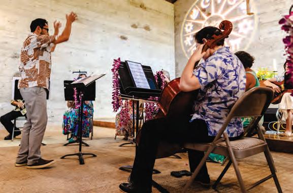 Capriccio No. 1 in E Major, “Kamuela Collage,” featured HPA students, faculty, and musicians from the Kamuela Symphony and Hawaiʻi Symphony Orchestra directed by Upper School Arts Chair Mario Flores. The piece sprang from a collaboration between Csige, Flores, and students from HPA’s Songwriting & Lyricism course, and it interweaves themes from Hole Waimea, Kilakila Nā Roughrider (a paniolo classic), and Hawai‘i Aloha by Lorenzo Lyons.