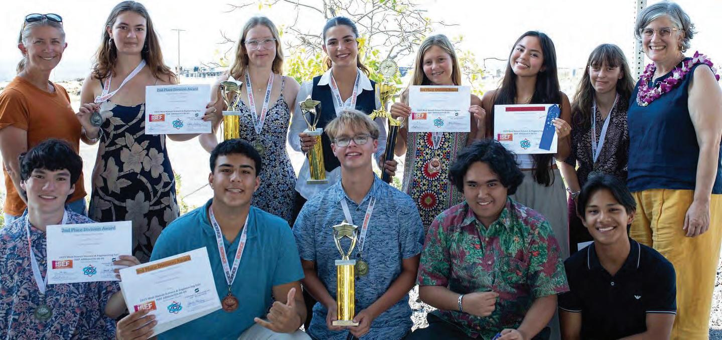 At the 2025 West Hawai‘i Science and Engineering Fair, 11 students showcased research on coral behavior, hawksbill turtle migration, invasive species in Maine’s freshwater lakes, the microbiome of A. taxiformis (a red algae), and more. The group took away multiple first, second, third, and fourth prizes, plus one champion award! Congratulations to Hélène Baril ’25, Isla Bradford ’25, Charlotte Kassis ’25, Hamilton Lee ’25, Jeannik (Nikki) Littlefield ’26, Henry Maling ’26, Nicholas Pigotti ’25, Andrew Sebastian ’25, Johna Sejati ’25, Johnathan-Kimo Uyehara ’25, and Fischer Wawner ’25. •
