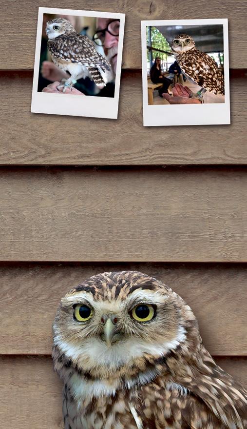 Make your visit extra special with this exciting encounter! Join our team of Burrowing Owls in the ’burrow’ where they will fly, hover, walk and run around you. They may even use you as a perch! Ask in our shop for details.