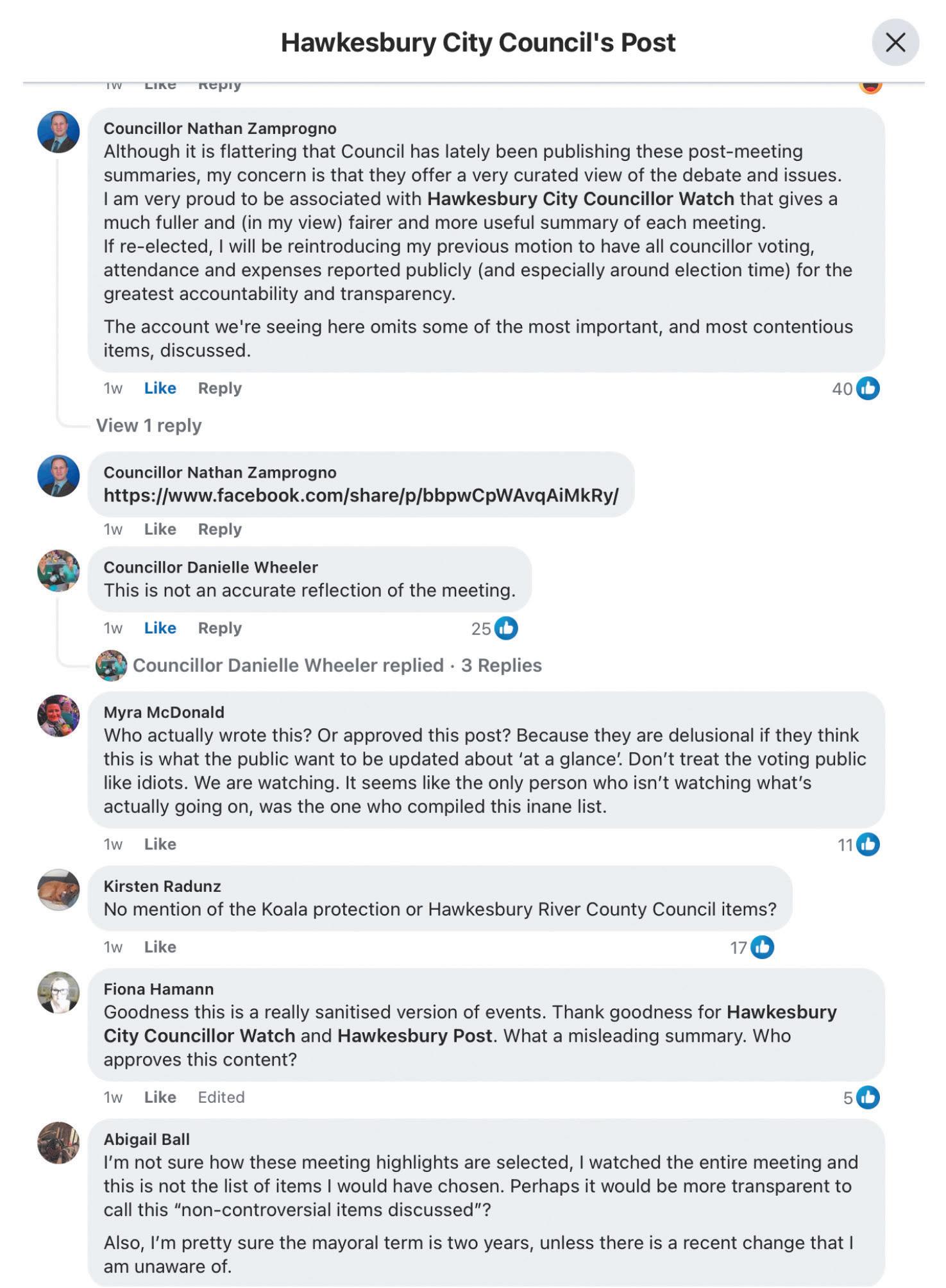 The recent unconventional emoji poll conducted on Facebook by the Hawkesbury Post has uncovered the issues that matter most to residents as council elections approach. While we accept the methodology was not strictly scientific, the results paint a clear picture of a community deeply concerned about Councillor integrity.