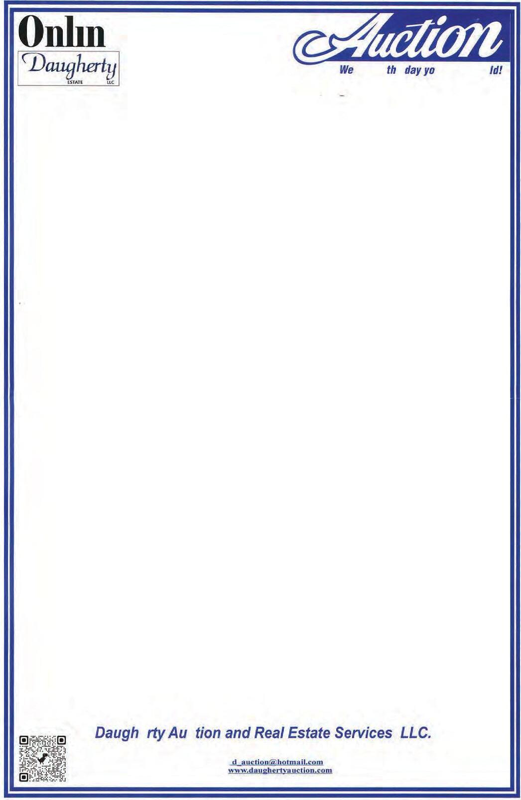 Terms: Cash or Check w/proper ID. Not Responsible for accidents or theft. All announcements day of auction supersede previous advertising.