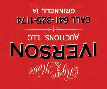 Phone: 641-675-3971 • Fax: 888-203-9720 • E-Mail: ads@hawkeyetrader.com HAWKEYE REE Every Friday www.hawkeyetrader.com Vol. 21 No. 28 July 21, 2023 CONSIGNED BY BRAND FAMILY FARMS 2023 PRE HARVEST CONSIGNMENT AUCTION SATURDAY AUGUST 5TH 2023 POWESHIEK COUNTY FAIRGROUNDS 425 EAST ST. SOUTH GRINNELL IOWA 50112 LIVE AUCTION 9:00 am LUNCH ON GROUNDS BY PAPA WOOLFE’S BBQ | ONLINE BIDDING 11am THROUGH EQUIPMENTFACTS CONSIGNMENTS WANTED!! Tractors ◆ Farm Equipment ◆ Semis ◆ Construction Equipment ◆ Vehicles ◆ Hay/Straw ◆ Livestock Equipment ◆ Lawn/Garden ◆ ATV/UTV ◆ Shop Equipment/Tools - Special Rates for EstatesRetirment's-Closeouts-Inventory Reduction lines of Equipment! - Tires only accepted at 75% tread or higher - Trucking Available to the Auction Site - Bid online through Equipment Facts FOR UPDATED SALE CATALOG VISIT WWW.IVERSONAUCTIONS.COM TO CONSIGN CALL Ryan Iverson 641-325-1174 Kyle Mccuen 641-990-9009 Craig Johnstone 641-521-3154 2018 Kubota SVL95-2 & Fecon Mulching Head HiFlow, Loaded!............................................ $79,900 2017 Deere 333E 100hp, 3529hrs, AC/Cab, Joystx, 2sp $44,900 2015 Deere 319E 69hp, 1874hr Joystx, NEW Trax $34,900 2015 Kubota SVL90 92hp, 2943hr, AC/Cab ,Joystx, 2sp $42,500 2012 Cat 259b3 75hp, 1191hr, AC/Cab, 2sp, New Trx $54,900 2004 Bobcat S300 *HiFlow* 81hp, 2662hr, AC/Cab, 2speed $34,900 2016 Deere 326E *HiFlow*, 2300hr, AC, Joystx, 2speed, NEW Tires $39,900 2012 Cat 247b3 62hp, 3390hr, Ht/Cab Joystx $29,900 2022 Deere 317G Cab & OROPS, Warranty starting at $55,995 2014 Bobcat S70 24hp, 1201hrs, 36” smooth bkt included $19,995