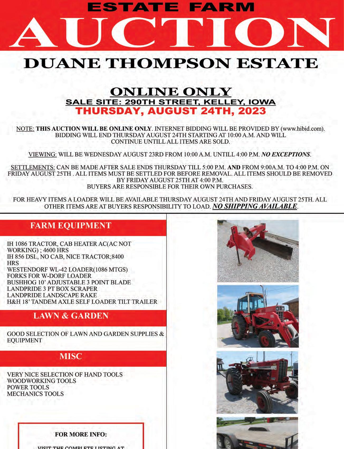Auction Location: Rolfe Community Building, Rolfe Ia