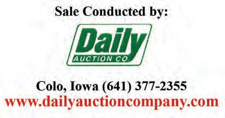 Hawkeye Trader, August 11, 2023 Page 3 “Your Trader Goes A Long Way to Serve You” 1187 Orange Ave, Kalona 319-646-1103 vm Bring In Your Plans for a Free Estimate Specializing in Roll Forming • Pole Barn Packages • Re-Roo ng Full Line of Building Materials '03 Freightliner Columbia Mercedes 10 Spd, Alloys, Good Rubber & Brakes, New 5th Wheel, New Bumper, Wet Kit, Toolbox, 780K LAMBIRTH’S TRUCKS 641-943-2551 $30,000 PUTNEY AUCTION SERVICE (515) 961-4124 TRUCK, SUV, MOTORCYCLES, SQUARE BALER, TOOLS, FURNITURE, HOUSEHOLD, PRIMITIVES, LAWN & GARDEN, MOWERS, ANTIQUES, SHOES, PURSES, AND MUCH MORE. ONLINE AUCTION BID TODAY @ WWW.PUTNEYAUCTION.COM ONLINE BIDDING ENDS AUGUST 19TH, 2023 • LOTS START CLOSING AT 4PM, SOFT CLOSE 2612 W. 2ND AVE. (HWY 92 WEST) • INDIANOLA, IA 50125 WWW.PUTNEYAUCTION.COM Open for viewing Saturdays and Sundays 9am – 4pm from now till auction day. Pickup Sunday, August 20th 9AM to 4PM-One Day Only. Shipping is available, restrictions apply LIKE US on Facebook: Putney Auction Service Putney Auction Service Mark Putney - Auctioneer 2612 W 2nd Ave (Hwy 92 West) • Indianola, IA 50125 Cell 515-249-3676 • Office 515-961-4124 C&C Cycle Chariton, IA • 888-475-2243 2016 CVO Street Glide FBI 12” Handle Bars, Rhinehart Full Exh & Pipes Regularly $29,995 www.cc-cycle.com SALE $27,995 NO DOC FEES! 2018 Kubota SVL95-2 & Fecon Mulching Head HiFlow, Loaded!............................................ $79,900 2017 Deere 333E 100hp, 3529hrs, AC/Cab, Joystx, 2sp $44,900 2015 Deere 319E 69hp, 1874hr Joystx, NEW Trax $34,900 2015 Kubota SVL90 92hp, 2943hr, AC/Cab ,Joystx, 2sp $42,500 2012 Cat 259b3 75hp, 1191hr, AC/Cab, 2sp, New Trx $54,900 2004 Bobcat S300 *HiFlow* 81hp, 2662hr, AC/Cab, 2speed $34,900 2016 Deere 326E *HiFlow*, 2300hr, AC, Joystx, 2speed, NEW Tires $39,900 2012 Cat 247b3 62hp, 3390hr, Ht/Cab Joystx $29,900 2022 Deere 317G less than 1 hour! OROPS, Warranty $55,995 2014 Bobcat S70 24hp, 1201hrs, 36”