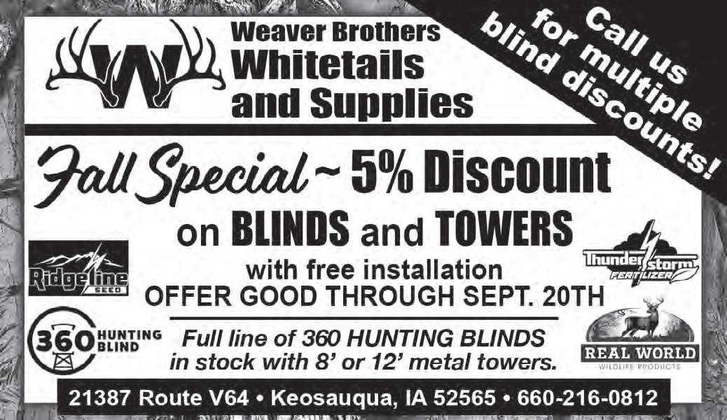 KRIEGER’S APPLIANCES: Antiques, Maytag, Coke, Pepsi, Tools, Collectibles, Bicycles, A1C’s Good Stuff. 109 East Main New London, Iowa. 319-367-5141 8-30 FOR SALE: 5 Crossbows. 1 Leathol 405 $275; 1 Bear X Reverse Draw $550; 1 Bone Collector 415 With Broadheads $350; Bone Collector 405 $275; Carbon Express $275; Also Lots Of Ammo. Maywood, MO 217-577-9538 8-30