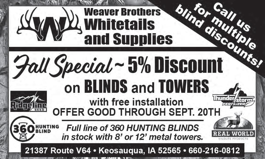 WANTED: Standing Timber And Cut Logs. Walnut, Oak, Soft Maple And Other Species. Paid In Full Before Trees Are Cut. Bonded And Insured. Call Cole. 641-895-8209 2-28-25 FOR SALE: Thompson Contender Pistol, 223 W/ Scope, Barrel And 45-400 Barrel, Shoulder Holster Metal Case W/Hacker, Bag Case. $1,100. 314-750-5146 9-6 FOR SALE: Queen Mattresses $369, Reclining Love Seats $399. Bargain Warehouse Memphis MO 660-465-2591 9-6 SCOTT HUSKEY’S INSULATED SKIRTING SYSTEMS: Keeps Your Home Cooler In The Summer - Warmer In The Winter - Saves On Utilities And Looks Great! Since 1972. 573-696-3468 TFN FREE HEAT & HOT WATER: Eliminate Monthly Heating Bills w/Classic Outdoor Wood Furnace. No Sunday Calls. 660-707-3866 TFN