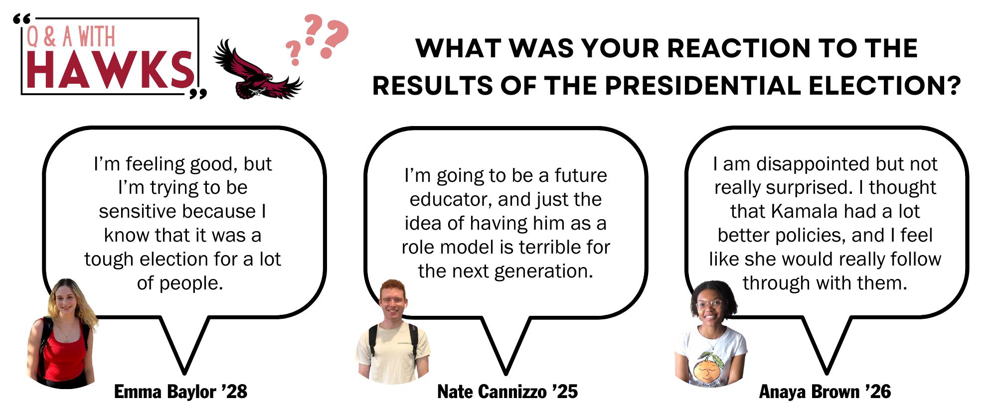 Although discouraged by the outcome of the election, Caroline Kuzy ’25 said she still felt hopeful because people seemed to be expressing their election opinions in a safe way.
