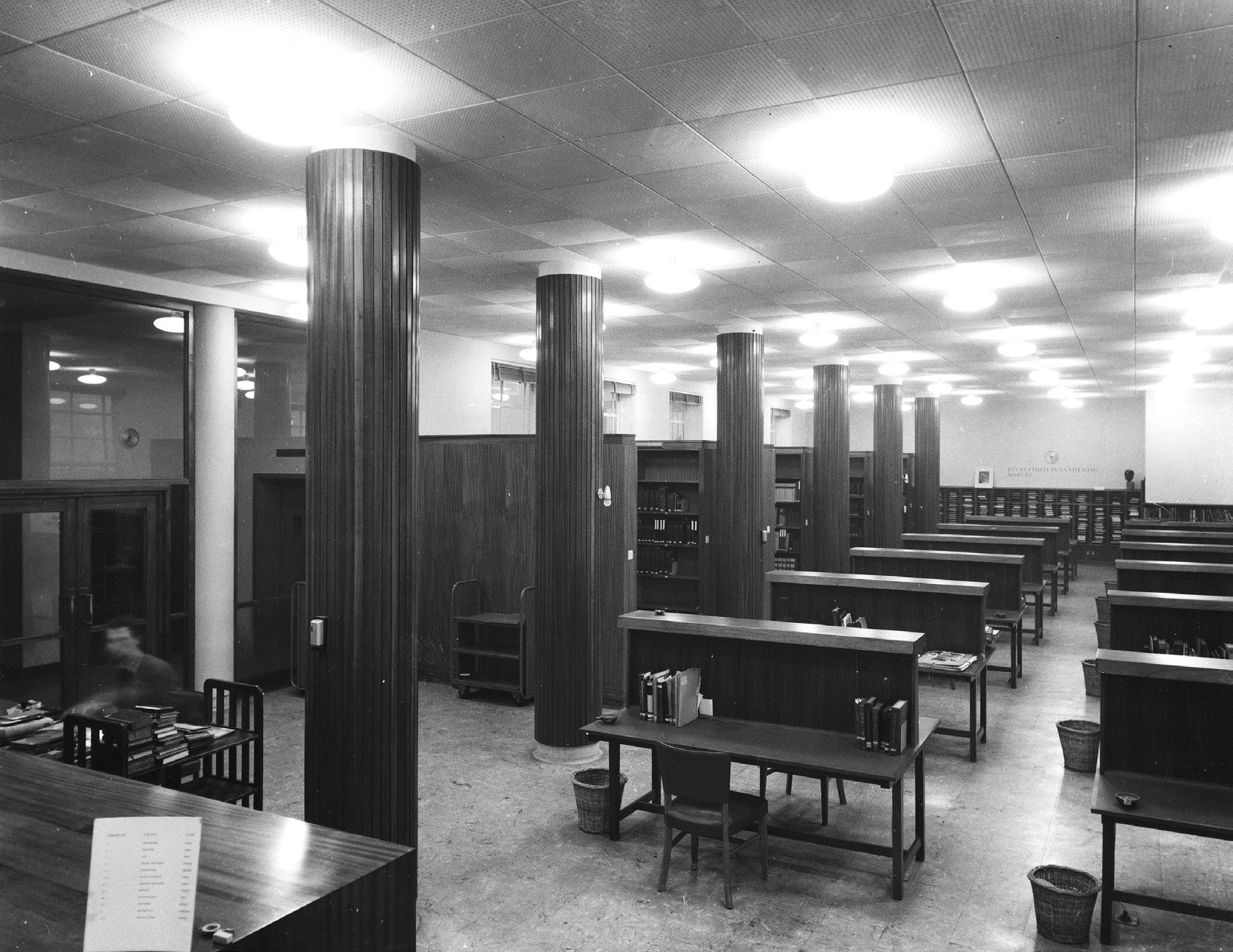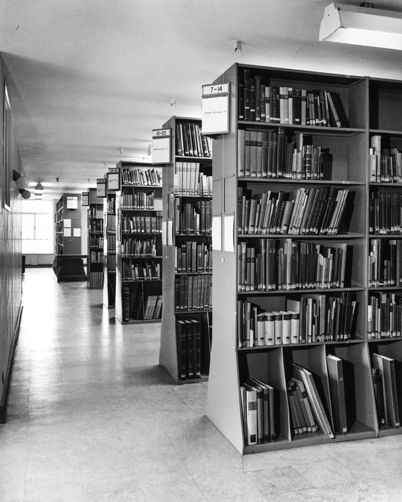First floor stacks, Warburg Institute, Woburn Square, 1958.