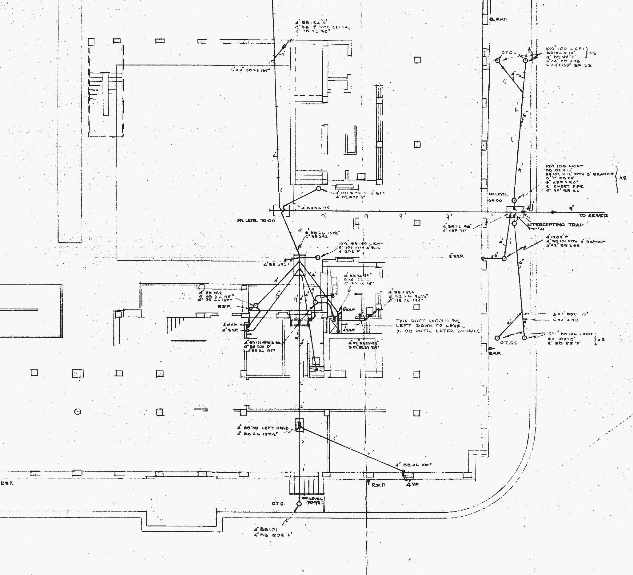 Matthew Hall & Co. Ltd, Warburg Institute Basement Drainage Layout, 1956 (detail).