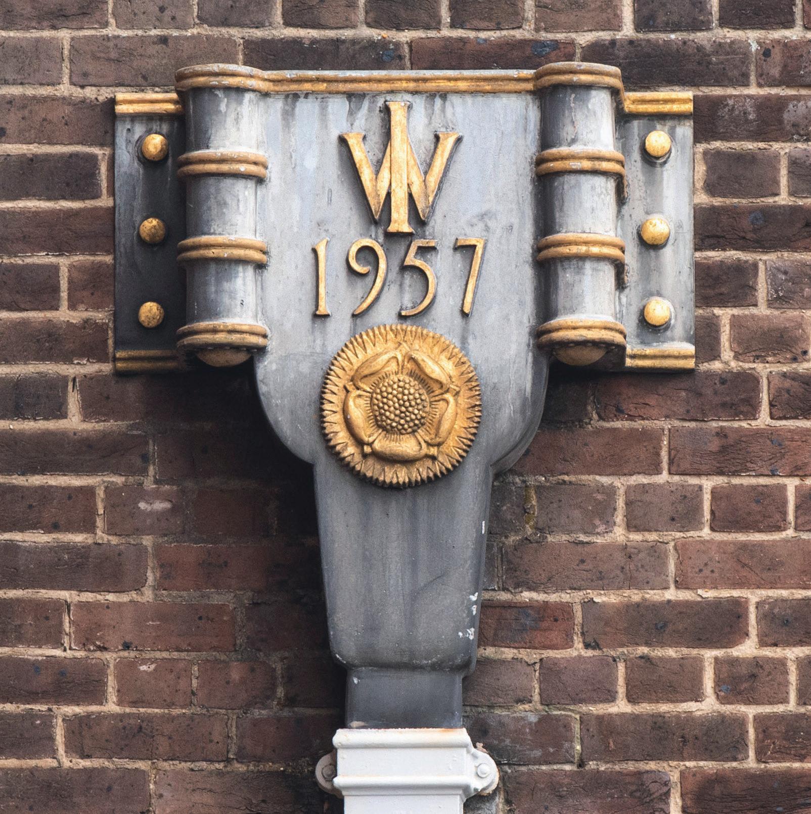 Adams Holden & Pearson Architects. Lead rainwater hopper, Warburg Institute, 1957.