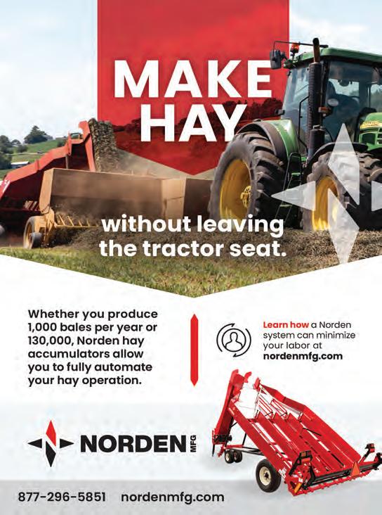 HAY & FORAGE GROWER (ISSN 0891-5946) copyright © 2023 W. D. Hoard & Sons Company. All rights reserved. Published six times annually in January, February, March, April/May, August/September and November by W. D. Hoard & Sons Co., 28 Milwaukee Ave., W., Fort Atkinson, Wisconsin 53538 USA. Tel: 920-563-5551. Fax: 920-563-7298. Email: info@hayandforage.com. Website: www.hayandforage.com. Periodicals Postage paid at Fort Atkinson, Wis., and additional mail offices. SUBSCRIPTION RATES: Free and controlled circulation to qualified subscribers. Non-qualified subscribers may subscribe at: USA: 1 year $20 U.S.; Outside USA: Canada & Mexico, 1 year $80 U.S.; All other countries, 1 year $120 U.S. For Subscriber Services contact: Hay & Forage Grower, PO Box 801, Fort Atkinson, WI 53538 USA; call: 920-563-5551, email: info@hayandforage.com or visit: www.hayandforage.com. POSTMASTER: Send address changes to HAY & FORAGE GROWER, 28 Milwaukee Ave., W., Fort Atkinson, Wisconsin 53538 USA. Subscribers who have provided a valid email address may receive the Hay & Forage Grower email newsletter eHay Weekly. March 2023 · VOL. 38 · No. 3