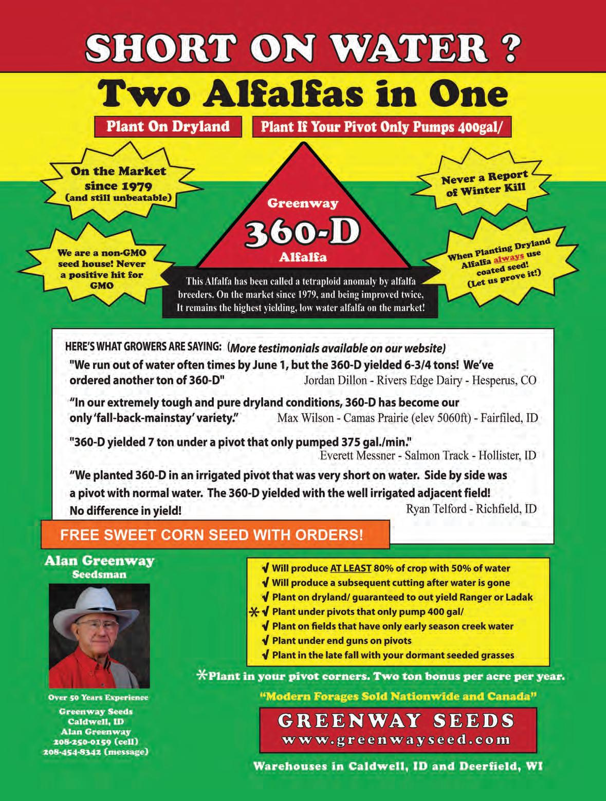 HAY & FORAGE GROWER (ISSN 0891-5946) copyright © 2024 W. D. Hoard & Sons Company. All rights reserved. Published six times annually in January, February, March, April/May, August/September and November by W. D. Hoard & Sons Co., 28 Milwaukee Ave., W., Fort Atkinson, Wisconsin 53538 USA. Tel: 920-563-5551. Fax: 920-563-7298. Email: info@hayandforage.com. Website: www.hayandforage.com. Periodicals Postage paid at Fort Atkinson, Wis., and additional mail offices. SUBSCRIPTION RATES: Free and controlled circulation to qualified subscribers. Non-qualified subscribers may subscribe at: USA: 1 year $20 U.S.; Outside USA: Canada & Mexico, 1 year $80 U.S.; All other countries, 1 year $120 U.S. For Subscriber Services contact: Hay & Forage Grower, PO Box 801, Fort Atkinson, WI 53538 USA; call: 920-563-5551, email: info@hayandforage.com or visit: www.hayandforage.com. POSTMASTER: Send address changes to HAY & FORAGE GROWER, 28 Milwaukee Ave., W., Fort Atkinson, Wisconsin 53538 USA. Subscribers who have provided a valid email address may receive the Hay & Forage Grower email newsletter eHay Weekly February 2024 · VOL. 39 · No. 2