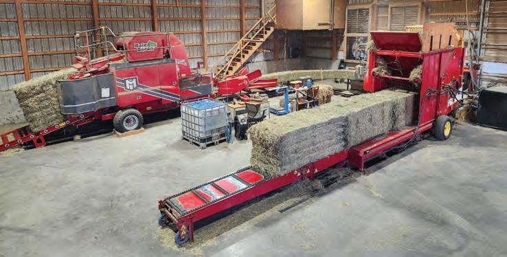 Rodney Boll built an integrated conversion system in his hay barn to downsize large square bales into small ones. All photos Boll Farms