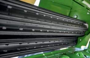 The machine incorporates the Optidisc Elite cutterbar, utilizing a through-bolted design and is lubed for life. The cutterbar has a slim profile, enabling a short cut, while the flat cutterbar angle reduces soil contamination in the crop and prolongs blade life.