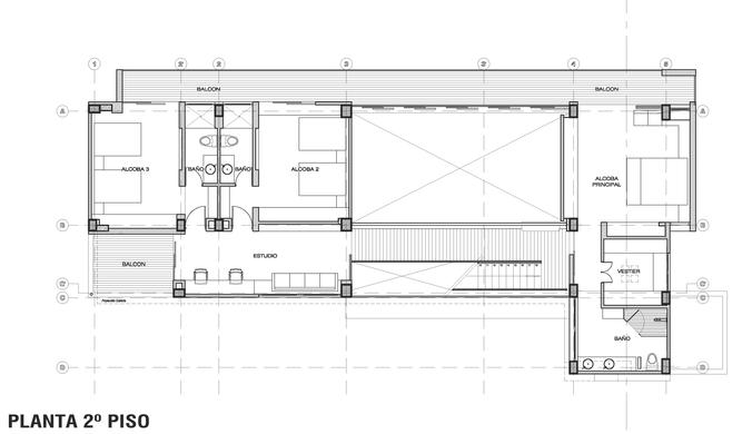 Esta residencia en el piedemonte villavicense fue imaginada como una gran roca blanca que con unas sustracciones precisas se abre a sus jardines interiores mientras mantiene la privacidad de la familia Aprovechando su forma lineal, la fachada mas densa, que contiene las circulaciones y algunos espacios de servicio, se cierra al sol de la tarde y a la calle, mientras que la fachada opuesta se abre al paisaje llanero, vinculando las zonas sociales con la terraza y la piscina, además de un balcón que se proyecta unificando las habitaciones.