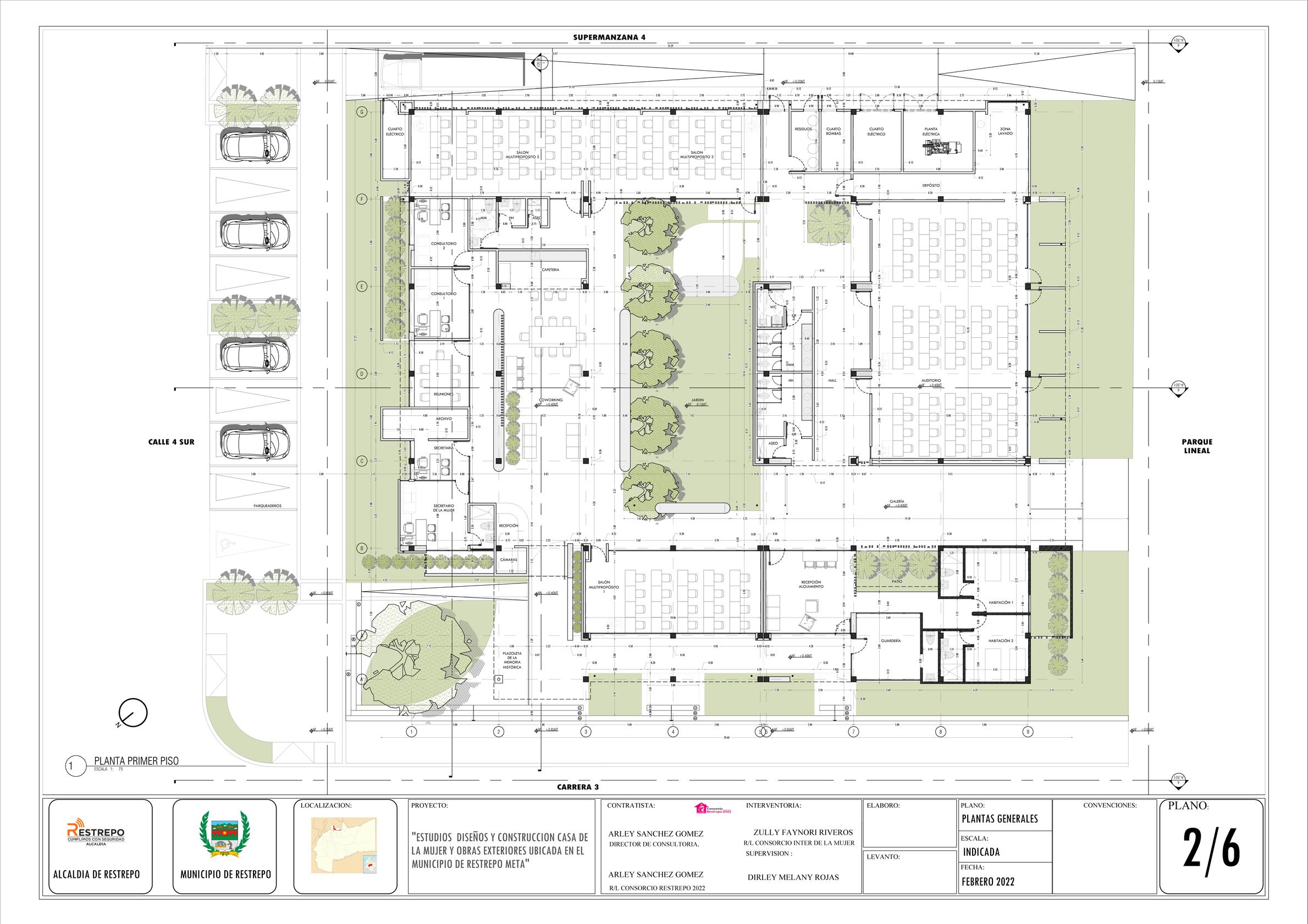 El diseño arquitectónico de la Casa de la Mujer es resultado de un ejercicio participativo con la institución, buscando maximizar el impacto social en las mujeres de Restrepo a infraestructura eficiente y atr ofrezca oportunidades de empod