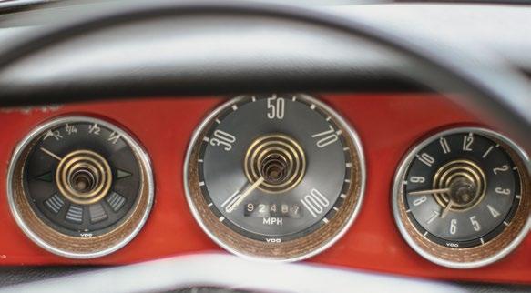The car had been painted several shades of red over the years in the States, and having baked in Texas it was very dry and tired with a lot of red oxide in places. They spent many hours flat sanding and polishing before finally giving in and sending it off to Steve Parsons, the Patina Blender, to even out where the wing was repaired and finesse the mismatched shades of red/pink. He went the extra mile, flatting the paint back even more, so the car now actually takes polish and keeps a shine. Steve also matched in some imperfections on the areas he repainted. He has